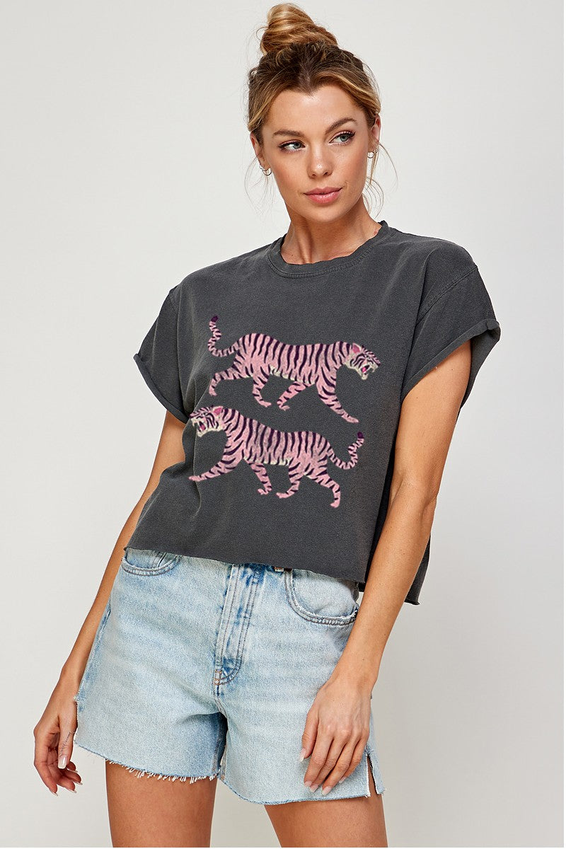TIGERS VINTAGE GRAPHIC CROP TOP